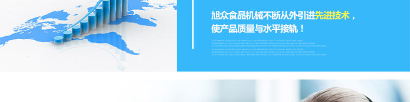 廣州旭眾食品機械有限公司是一家集科研開發(fā),生產設計,營銷服務為一體的現(xiàn)代化生產企業(yè)?,F(xiàn)代化生產車間,精湛制造技術,所產機械歷經市場重重考驗,不斷贏得海內外客戶的贊譽。