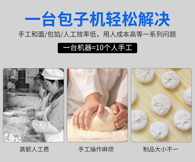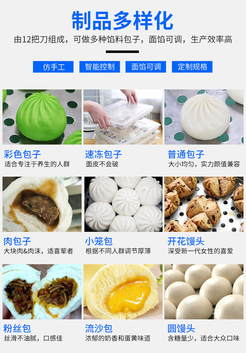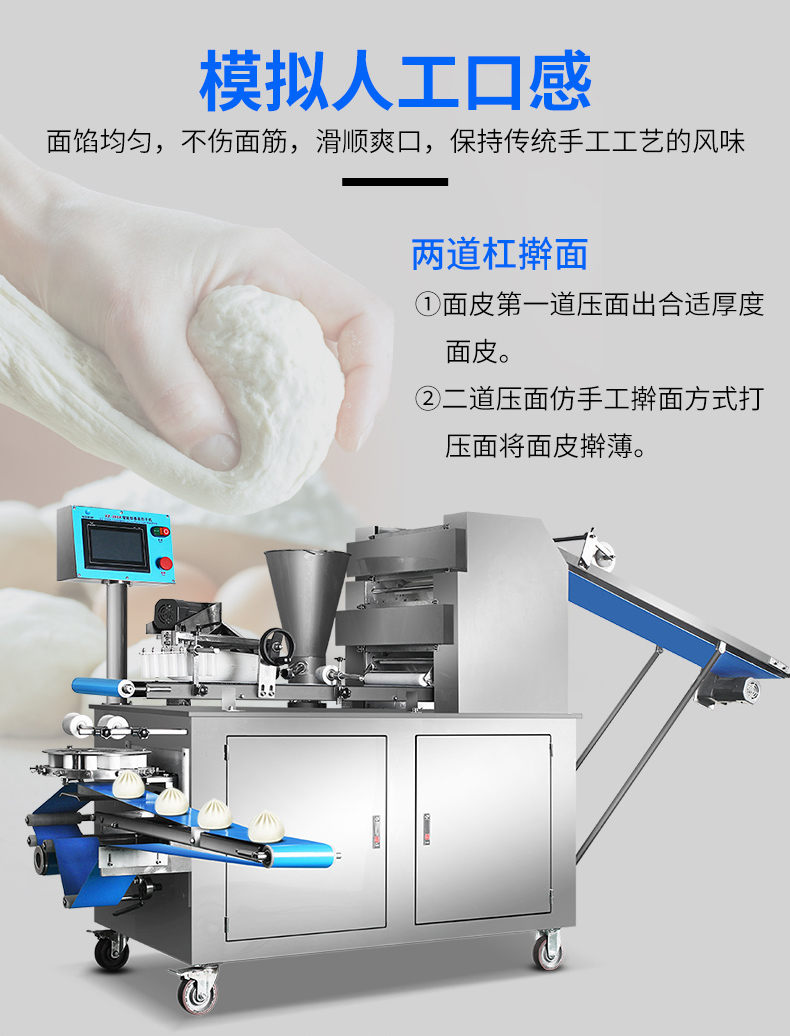 XZ-290A智能型卷面包子機(jī),仿手工智能包子機(jī)。操作簡單、精準(zhǔn)控制、快速成型、模擬人工。好機(jī)器,表里如一,專注品質(zhì)機(jī)器,客戶現(xiàn)場試機(jī)。一臺(tái)包子機(jī)輕松解決手工和面/包餡/人工效率低,用人成本高等一系列問題。