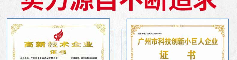廣州旭眾食品機械有限公司是一家集科研開發(fā),生產(chǎn)設(shè)計,營銷服務(wù)為一體的現(xiàn)代化生產(chǎn)企業(yè)?,F(xiàn)代化生產(chǎn)車間,精湛制造技術(shù),所產(chǎn)機械歷經(jīng)市場重重考驗,不斷贏得海內(nèi)外客戶的贊譽。