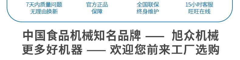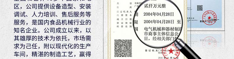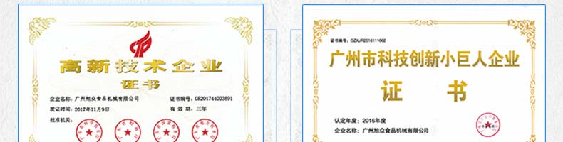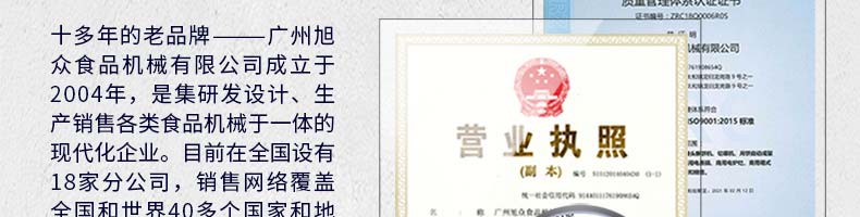 廣州旭眾食品機(jī)械有限公司是一家集科研開(kāi)發(fā),生產(chǎn)設(shè)計(jì),營(yíng)銷(xiāo)服務(wù)為一體的現(xiàn)代化生產(chǎn)企業(yè)?,F(xiàn)代化生產(chǎn)車(chē)間,精湛制造技術(shù),所產(chǎn)機(jī)械歷經(jīng)市場(chǎng)重重考驗(yàn),不斷贏得海內(nèi)外客戶(hù)的贊譽(yù)。