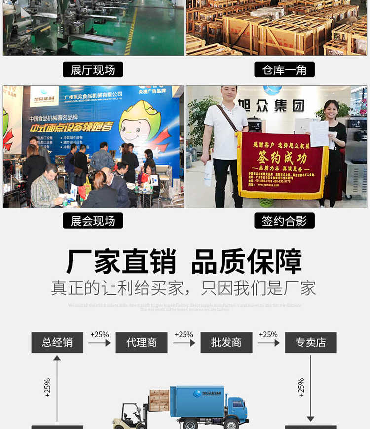 廣州旭眾食品機械有限公司是一家集科研開發(fā),生產設計,營銷服務為一體的現代化生產企業(yè)?,F代化生產車間,精湛制造技術,所產機械歷經市場重重考驗,不斷贏得海內外客戶的贊譽。