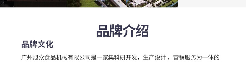 廣州旭眾食品機(jī)械有限公司是一家集科研開(kāi)發(fā),生產(chǎn)設(shè)計(jì),營(yíng)銷(xiāo)服務(wù)為一體的現(xiàn)代化生產(chǎn)企業(yè)?,F(xiàn)代化生產(chǎn)車(chē)間,精湛制造技術(shù),所產(chǎn)機(jī)械歷經(jīng)市場(chǎng)重重考驗(yàn),不斷贏得海內(nèi)外客戶(hù)的贊譽(yù)。