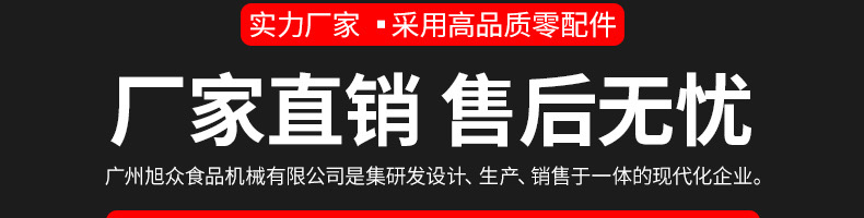 廣州旭眾食品機(jī)械有限公司是一家集科研開(kāi)發(fā),生產(chǎn)設(shè)計(jì),營(yíng)銷(xiāo)服務(wù)為一體的現(xiàn)代化生產(chǎn)企業(yè)。現(xiàn)代化生產(chǎn)車(chē)間,精湛制造技術(shù),所產(chǎn)機(jī)械歷經(jīng)市場(chǎng)重重考驗(yàn),不斷贏得海內(nèi)外客戶(hù)的贊譽(yù)。