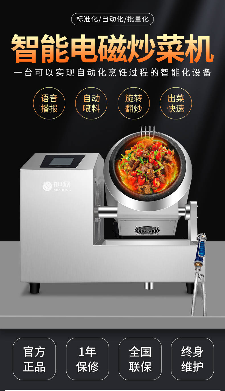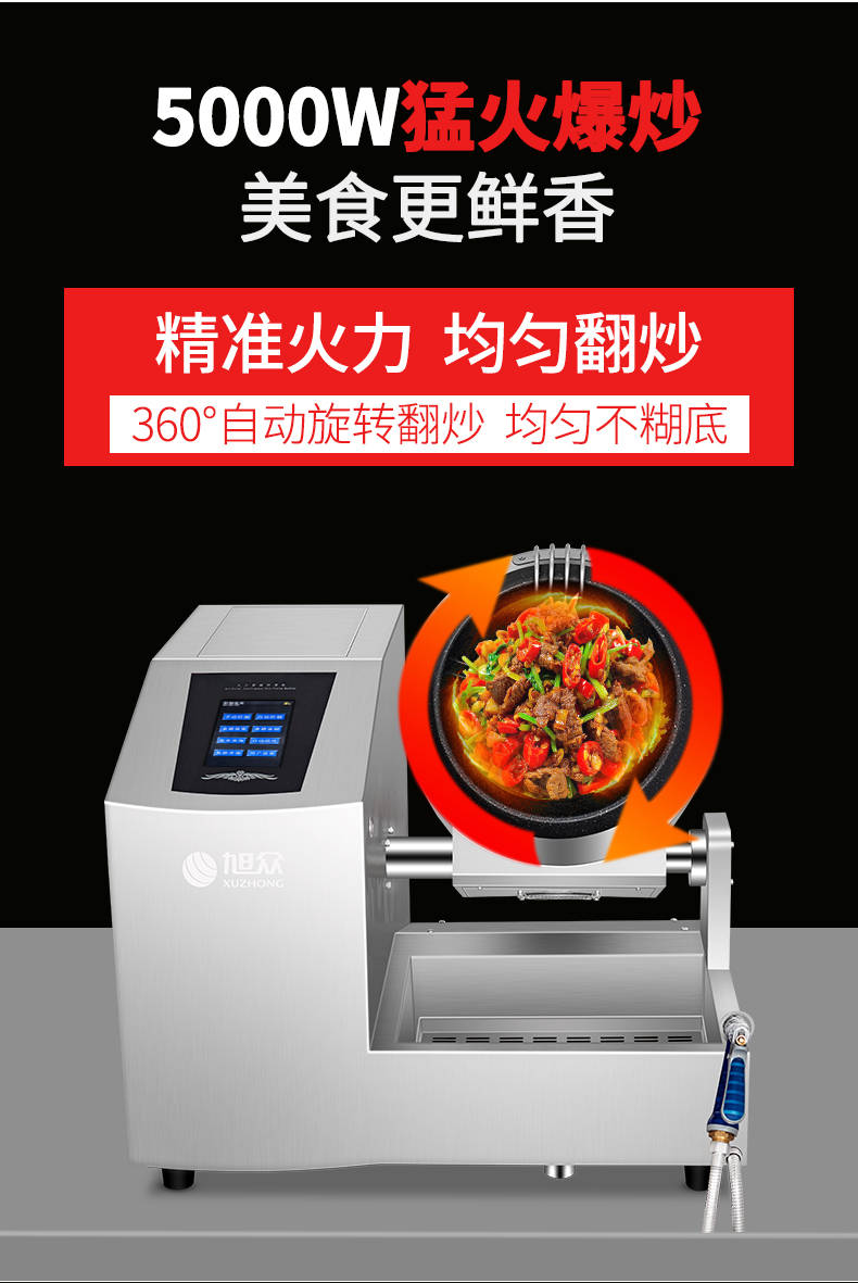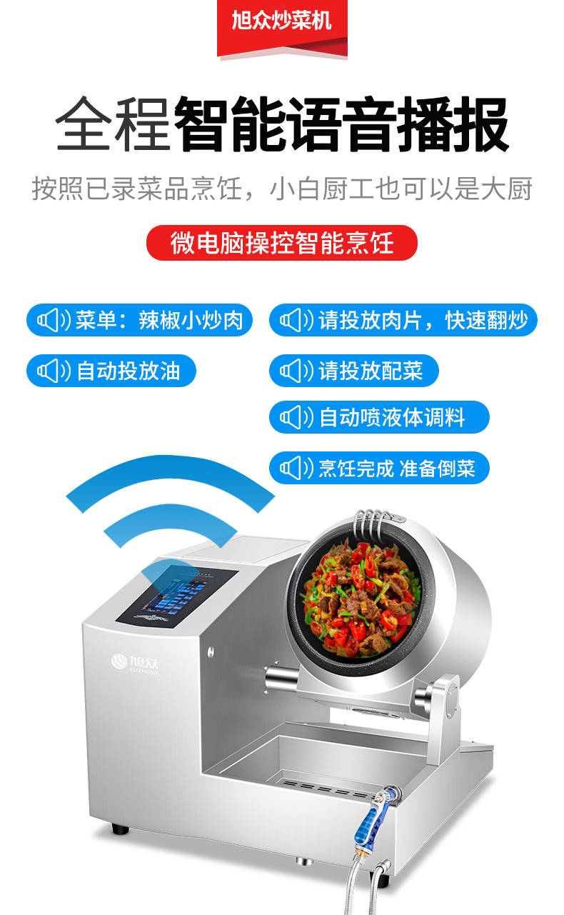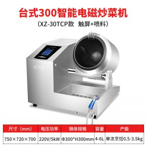 XZ-30TCP臺(tái)式300智能電磁炒菜機(jī)(觸屏+噴料),可以實(shí)現(xiàn)自動(dòng)化烹飪過程的智能化設(shè)備,語(yǔ)音播報(bào)、自動(dòng)噴料、旋轉(zhuǎn)翻炒、快速出菜。實(shí)現(xiàn)自動(dòng)化烹飪,新一代微電腦操控智能烹飪?cè)O(shè)備、顛覆傳統(tǒng)炒菜模式。5000W猛火爆炒美食更鮮香
