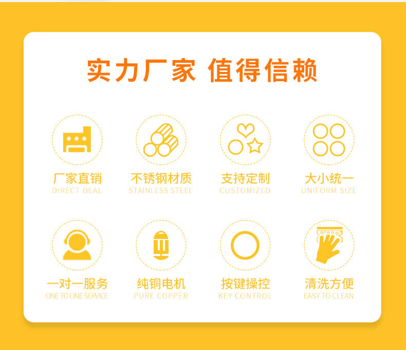 廣州旭眾食品機(jī)械有限公司是一家集科研開發(fā),生產(chǎn)設(shè)計(jì),營(yíng)銷服務(wù)為一體的現(xiàn)代化生產(chǎn)企業(yè)?,F(xiàn)代化生產(chǎn)車間,精湛制造技術(shù),所產(chǎn)機(jī)械歷經(jīng)市場(chǎng)重重考驗(yàn),不斷贏得海內(nèi)外客戶的贊譽(yù)。