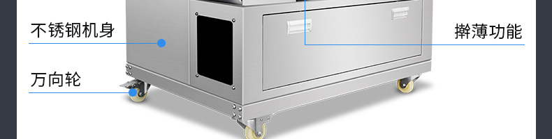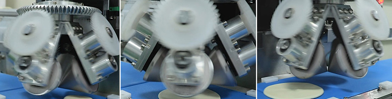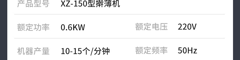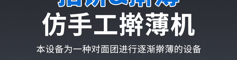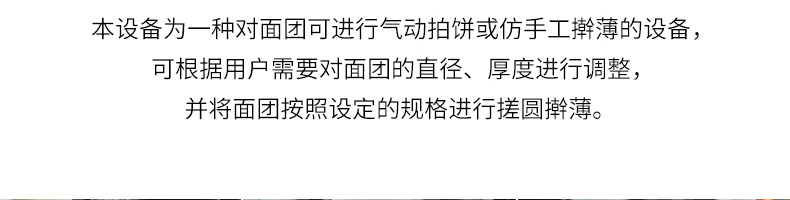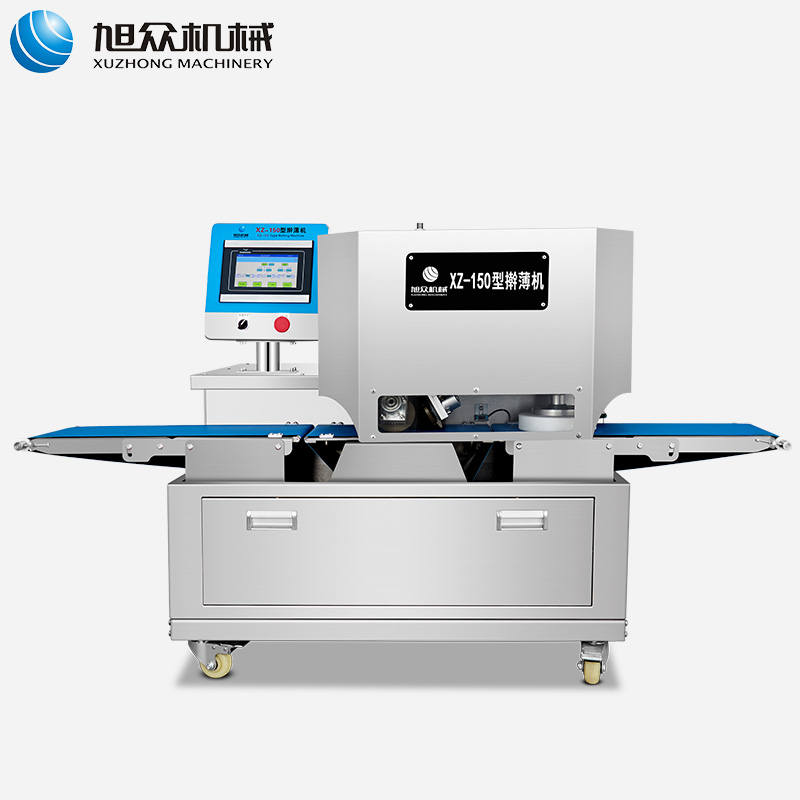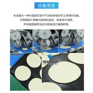 XZ-150型搟薄機,為一種對面團(tuán)可進(jìn)行氣動拍餅或仿手工搟薄的設(shè)備,可根據(jù)用戶需要對面團(tuán)的直徑、厚度進(jìn)行調(diào)整并將面團(tuán)按照設(shè)定的規(guī)格進(jìn)行搓圓摔搟薄。
