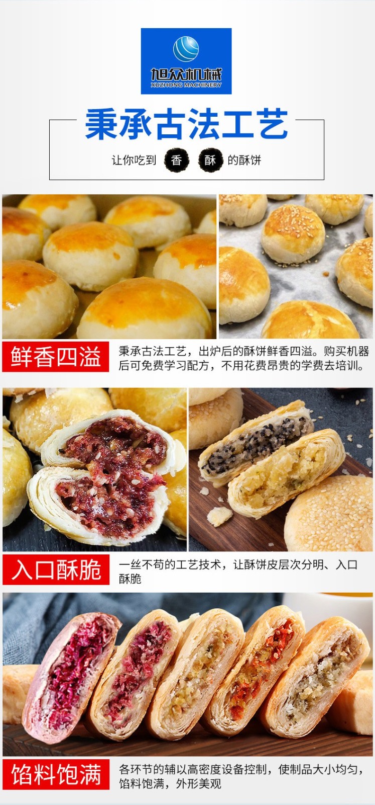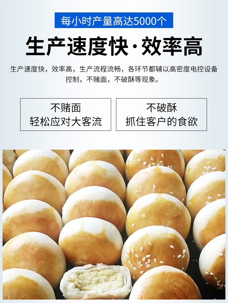 蛋黃酥生產(chǎn)線,酥餅生產(chǎn)線承包你的美食愿望。鮮花餅、綠豆餅、酥油餅、糖酥餅、肉松餅、紫薯酥餅、紫菜酥餅等。每小時(shí)產(chǎn)量高達(dá)5000個(gè),生產(chǎn)速度快、效率高。