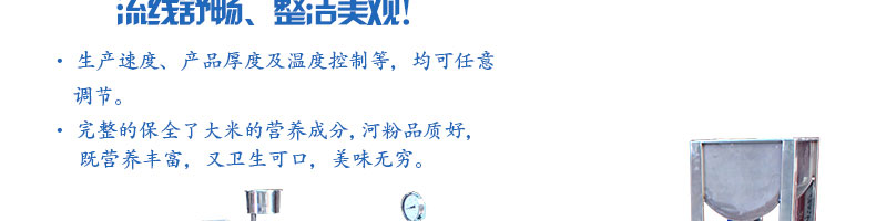 SZ-HF-80高效節(jié)能河粉機(jī),用高效節(jié)能河粉機(jī)生產(chǎn)的河粉,完整保全了大米的營(yíng)養(yǎng)成分,河粉品質(zhì)一流,既營(yíng)養(yǎng)豐富,又衛(wèi)生可口、美味無窮。