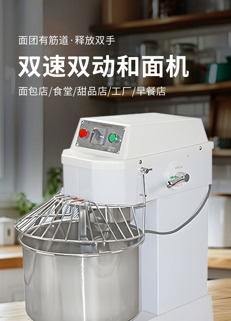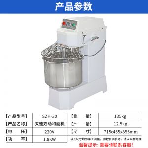 SZH-30型雙速雙動(dòng)和面機(jī),本機(jī)適合攪拌各種面包、包子、饅頭、湯圓、披薩餅面團(tuán),專業(yè)設(shè)計(jì)避免面團(tuán)過分升溫并確保面團(tuán)含氧量。過載、缺相保護(hù)裝置,防護(hù)罩安全連動(dòng)裝置。