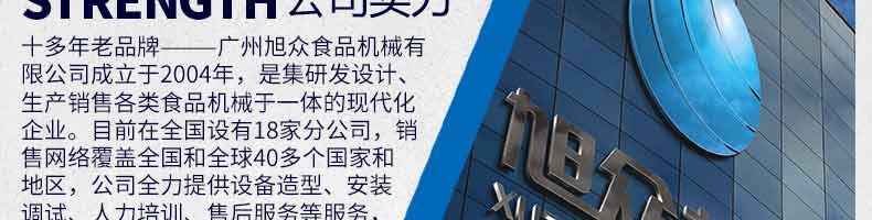 廣州旭眾食品機械有限公司是一家集科研開發(fā),生產(chǎn)設(shè)計,營銷服務(wù)為一體的現(xiàn)代化生產(chǎn)企業(yè)。現(xiàn)代化生產(chǎn)車間,精湛制造技術(shù),所產(chǎn)機械歷經(jīng)市場重重考驗,不斷贏得海內(nèi)外客戶的贊譽。