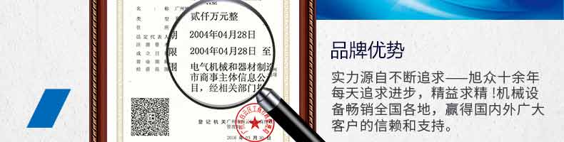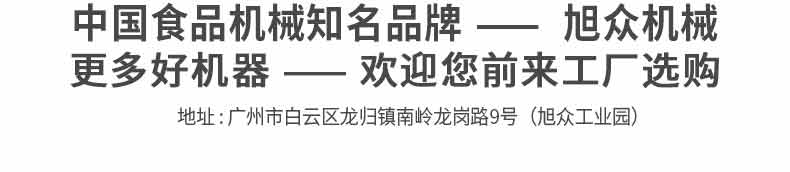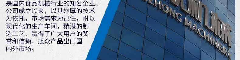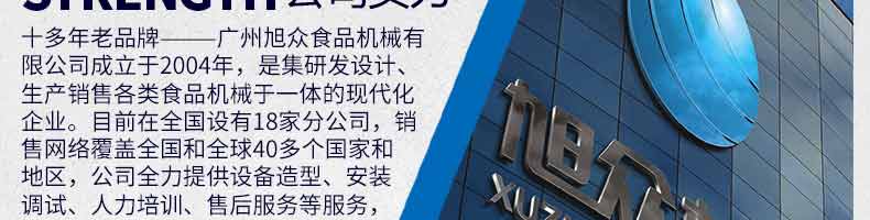 廣州旭眾食品機械有限公司是一家集科研開發(fā),生產(chǎn)設(shè)計,營銷服務(wù)為一體的現(xiàn)代化生產(chǎn)企業(yè)?,F(xiàn)代化生產(chǎn)車間,精湛制造技術(shù),所產(chǎn)機械歷經(jīng)市場重重考驗,不斷贏得海內(nèi)外客戶的贊譽。