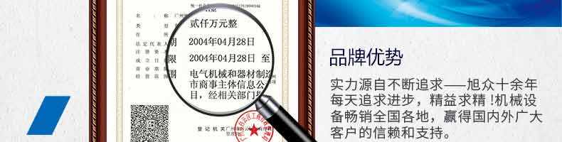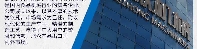 廣州旭眾食品機械有限公司是一家集科研開發(fā),生產設計,營銷服務為一體的現(xiàn)代化生產企業(yè)?,F(xiàn)代化生產車間,精湛制造技術,所產機械歷經市場重重考驗,不斷贏得海內外客戶的贊譽。