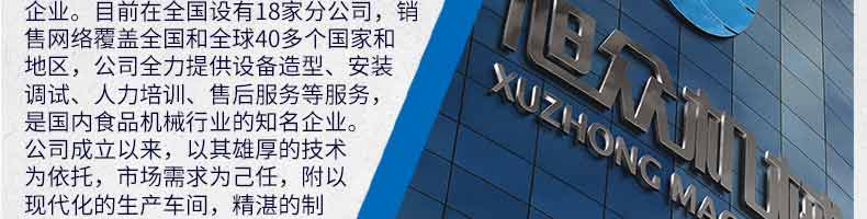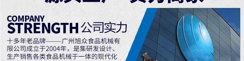 廣州旭眾食品機械有限公司是一家集科研開發(fā),生產(chǎn)設(shè)計,營銷服務(wù)為一體的現(xiàn)代化生產(chǎn)企業(yè)?,F(xiàn)代化生產(chǎn)車間,精湛制造技術(shù),所產(chǎn)機械歷經(jīng)市場重重考驗,不斷贏得海內(nèi)外客戶的贊譽。