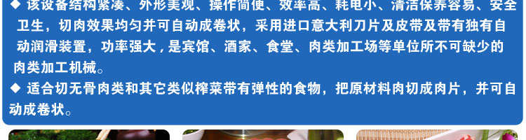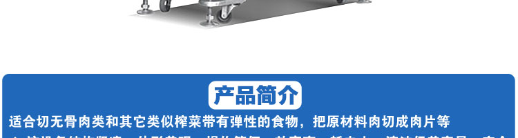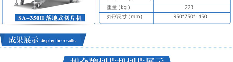 SA-350H 全自動(dòng)落地式切片機(jī),適合切無骨肉類和其他類似榨菜帶有彈性的食物,把原材料肉切成肉片,并可自動(dòng)成卷狀??汕信H馄?、羊肉片等