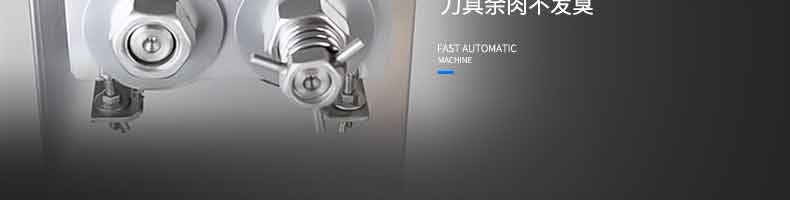 XZ-QX320-切肉機(jī),小型切肉機(jī)是一款主要對肉類進(jìn)行加工的設(shè)備,配置單層刀具一次性切肉片,二次切肉絲,再切成料。刀具采取外置懸臂式設(shè)計(jì),拆洗方便,衛(wèi)生更有保障;配置多種刀具,可加工不同厚度的肉片,實(shí)現(xiàn)一機(jī)多用;機(jī)內(nèi)裝有安全保護(hù)開頭,刀具外露時(shí),機(jī)器自鎖不能啟動,以保安全;卸下的刀具,不用清洗直接放置在6攝氏度以下的冰箱里,刀具余肉不發(fā)臭。刀片用特殊不銹鋼材料制造,經(jīng)久耐用。