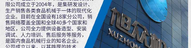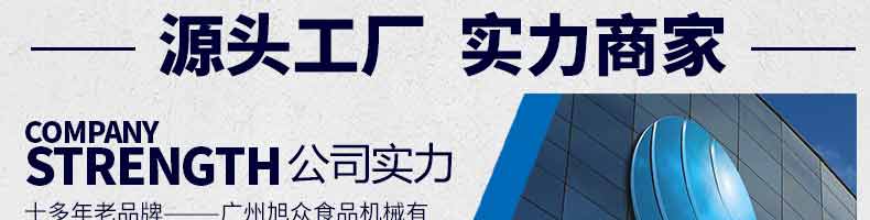 廣州旭眾食品機(jī)械有限公司是一家集科研開發(fā),生產(chǎn)設(shè)計(jì),營銷服務(wù)為一體的現(xiàn)代化生產(chǎn)企業(yè)。現(xiàn)代化生產(chǎn)車間,精湛制造技術(shù),所產(chǎn)機(jī)械歷經(jīng)市場重重考驗(yàn),不斷贏得海內(nèi)外客戶的贊譽(yù)。