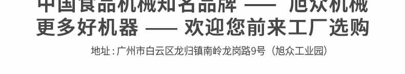 廣州旭眾食品機(jī)械有限公司是一家集科研開發(fā),生產(chǎn)設(shè)計(jì),營(yíng)銷服務(wù)為一體的現(xiàn)代化生產(chǎn)企業(yè)?,F(xiàn)代化生產(chǎn)車間,精湛制造技術(shù),所產(chǎn)機(jī)械歷經(jīng)市場(chǎng)重重考驗(yàn),不斷贏得海內(nèi)外客戶的贊譽(yù)。