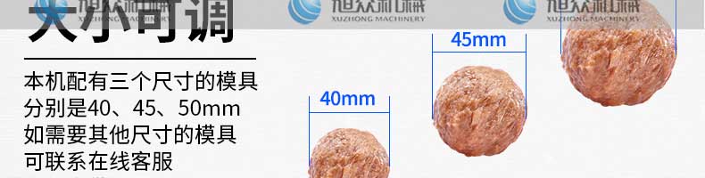 XZ-605S肉丸成型機,大直徑肉丸成型機,主要生產(chǎn)大肉丸、獅子頭等可訂做30-60mm的規(guī)格。輕松做好美味丸子解放雙手,輕松享受創(chuàng)業(yè)財富!