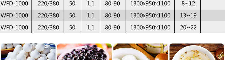 VFD-1000無餡湯圓機,本機可生產無餡湯圓、珍珠湯圓、桂花湯圓、奶茶所用的珍珠、檳榔紅丸、工藝品等。規(guī)格有8-34mm,可根據客戶要求定制。適用于個體戶、食品廠、學校等單位食堂??蓾M足不同客戶群體。免費提供工藝技術。
