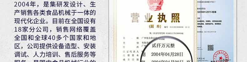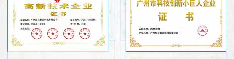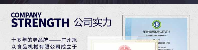 廣州旭眾食品機(jī)械有限公司是一家集科研開發(fā),生產(chǎn)設(shè)計(jì),營銷服務(wù)為一體的現(xiàn)代化生產(chǎn)企業(yè)?,F(xiàn)代化生產(chǎn)車間,精湛制造技術(shù),所產(chǎn)機(jī)械歷經(jīng)市場重重考驗(yàn),不斷贏得海內(nèi)外客戶的贊譽(yù)。