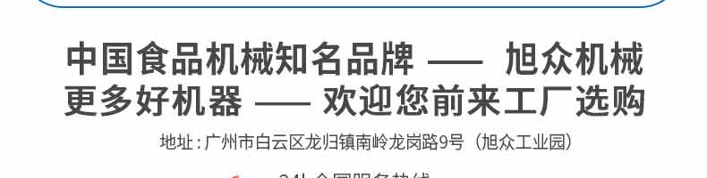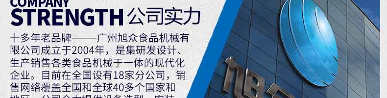 廣州旭眾食品機械有限公司是一家集科研開發(fā),生產(chǎn)設(shè)計,營銷服務(wù)為一體的現(xiàn)代化生產(chǎn)企業(yè)?,F(xiàn)代化生產(chǎn)車間,精湛制造技術(shù),所產(chǎn)機械歷經(jīng)市場重重考驗,不斷贏得海內(nèi)外客戶的贊譽。
