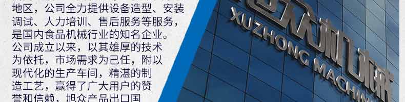 廣州旭眾食品機械有限公司是一家集科研開發(fā),生產(chǎn)設(shè)計,營銷服務(wù)為一體的現(xiàn)代化生產(chǎn)企業(yè)?,F(xiàn)代化生產(chǎn)車間,精湛制造技術(shù),所產(chǎn)機械歷經(jīng)市場重重考驗,不斷贏得海內(nèi)外客戶的贊譽。