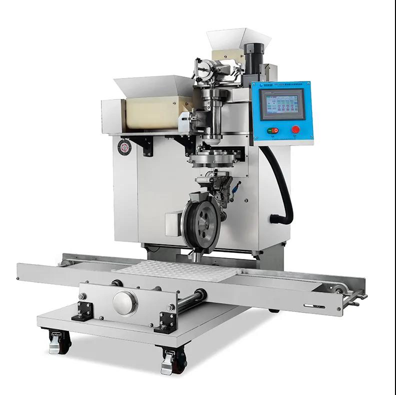 XZ4T-1502型多頭湯圓成型排盤機(jī)是一款依外皮及餡料的種類不同,可制作出湯圓、豆沙包、南瓜餅、奶黃包、含餡饅頭、玉兔包等包餡食品,并可自動排盤的設(shè)備。功能齊全,適用性廣,自動化程度高,定量準(zhǔn)確,操作簡單,只要將面團(tuán)與餡料放入進(jìn)料口,開機(jī)便可自動搓圓、成型,制品不易變形。