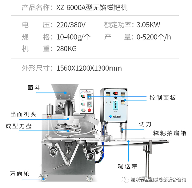 旭眾新款定做糍粑機(jī),是一款生產(chǎn)香甜無(wú)餡糍粑的設(shè)備;設(shè)備入料斗容量大,采用雙絞龍送料、變頻無(wú)極調(diào)速。產(chǎn)品大小、出皮厚度調(diào)節(jié)自如、使用方便、精確度高,出皮均勻、暢通、產(chǎn)品一次成型,所出產(chǎn)品外形大小統(tǒng)一,遠(yuǎn)比手工制作美觀、便捷。