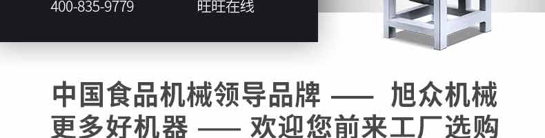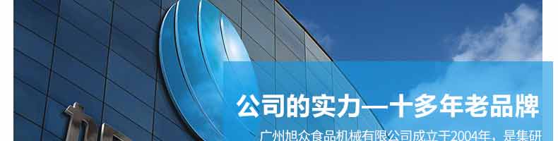廣州旭眾食品機(jī)械有限公司是一家集科研開發(fā),生產(chǎn)設(shè)計(jì),營銷服務(wù)為一體的現(xiàn)代化生產(chǎn)企業(yè)?,F(xiàn)代化生產(chǎn)車間,精湛制造技術(shù),所產(chǎn)機(jī)械歷經(jīng)市場(chǎng)重重考驗(yàn),不斷贏得海內(nèi)外客戶的贊譽(yù)。