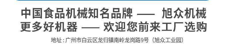 廣州旭眾食品機械有限公司是一家集科研開發(fā),生產(chǎn)設(shè)計,營銷服務(wù)為一體的現(xiàn)代化生產(chǎn)企業(yè)?,F(xiàn)代化生產(chǎn)車間,精湛制造技術(shù),所產(chǎn)機械歷經(jīng)市場重重考驗,不斷贏得海內(nèi)外客戶的贊譽。