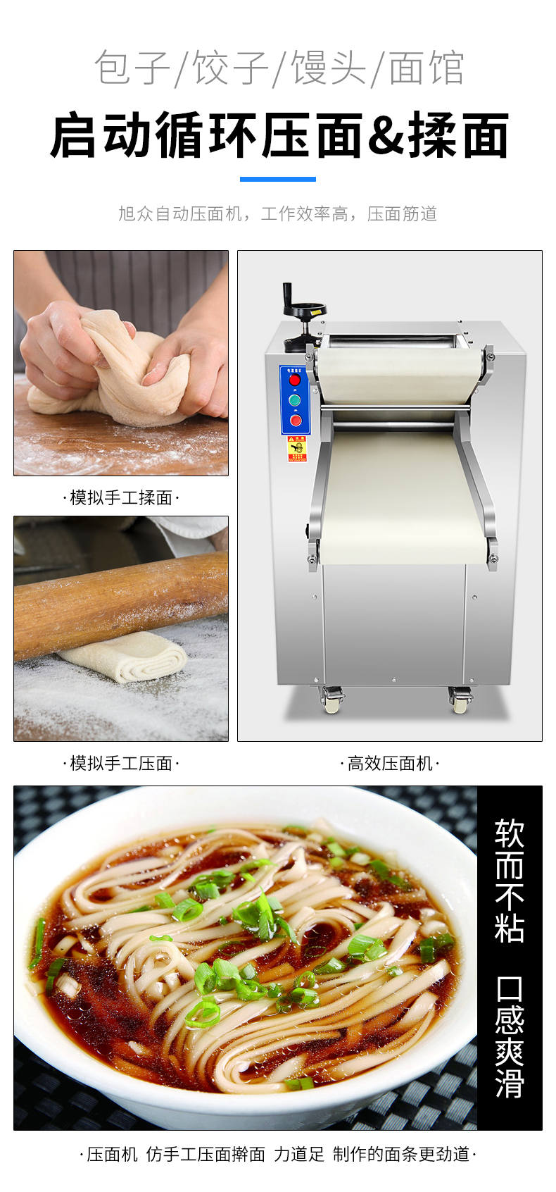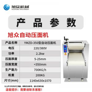 YMZD-350自動壓面機,自動循環(huán)、厚薄可調。包子、餃子、饅頭,面館等場所適用。啟動循環(huán)壓面、揉面。全自動仿人工揉面,壓面自動輸送、揉、壓、折疊。