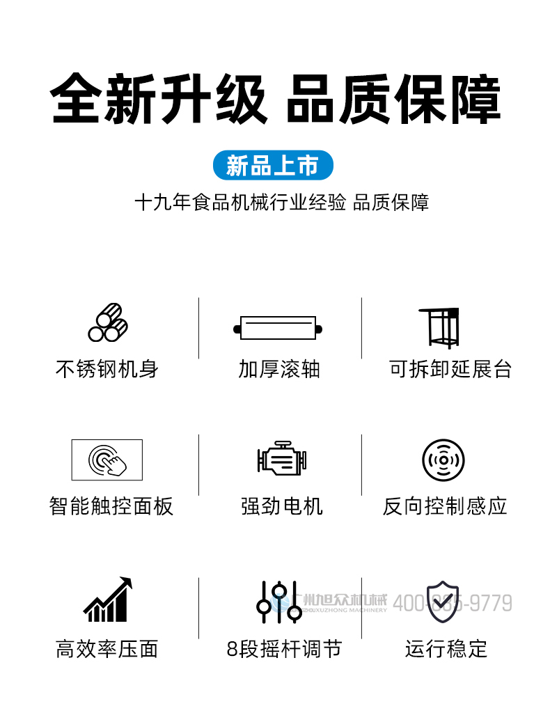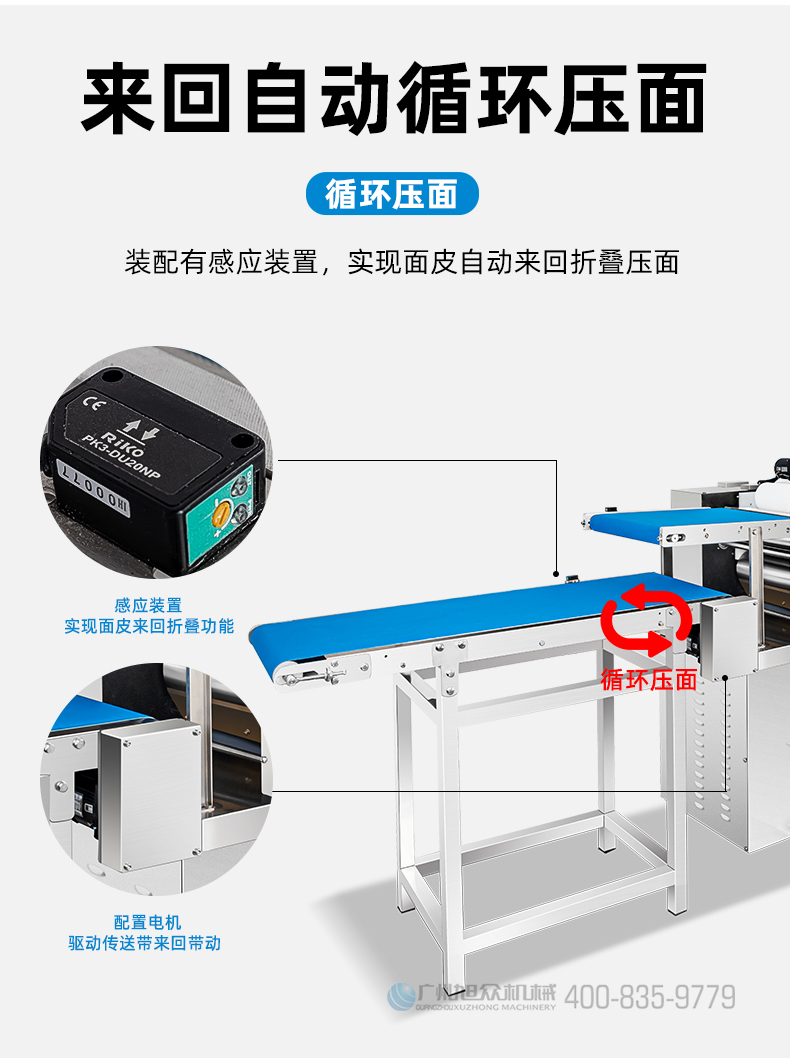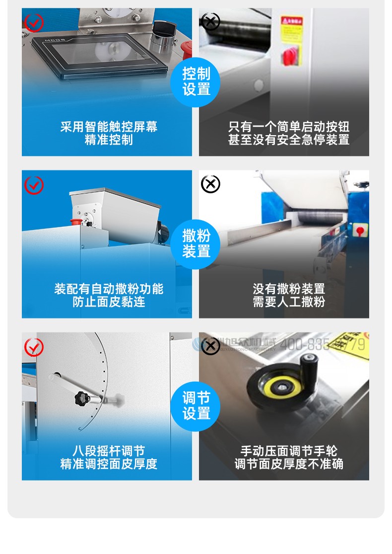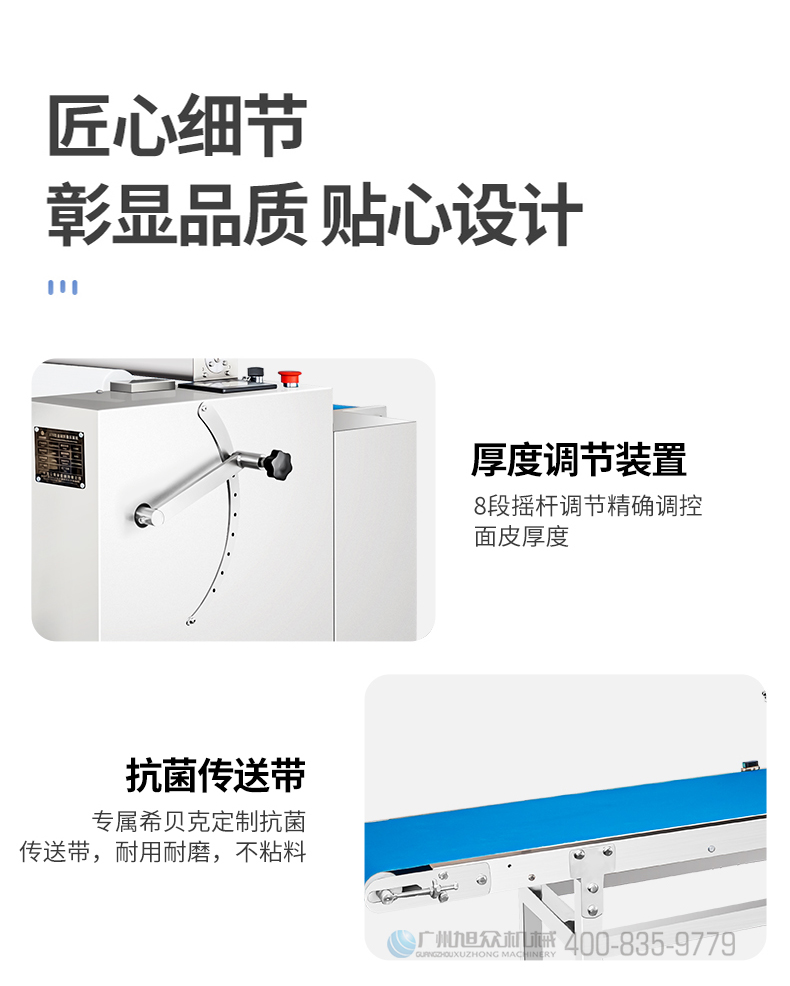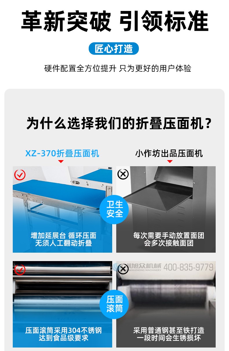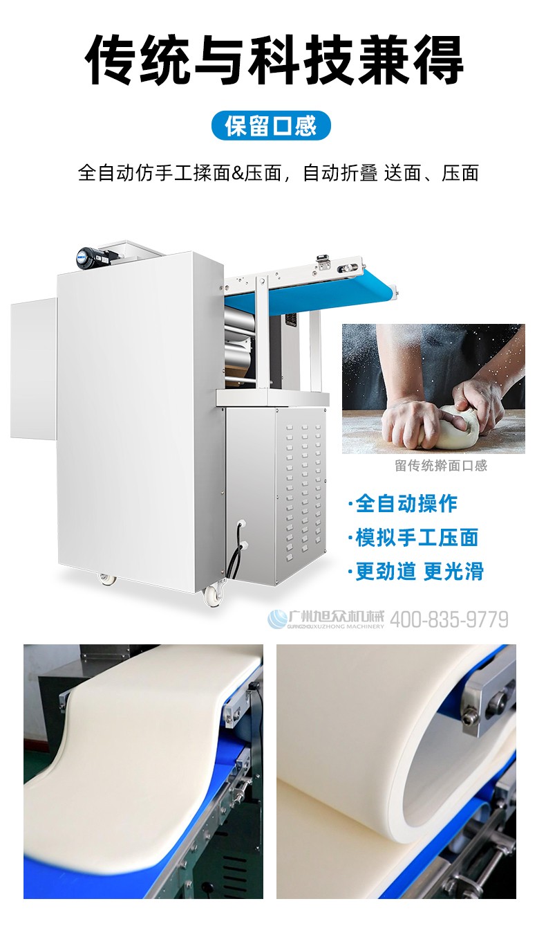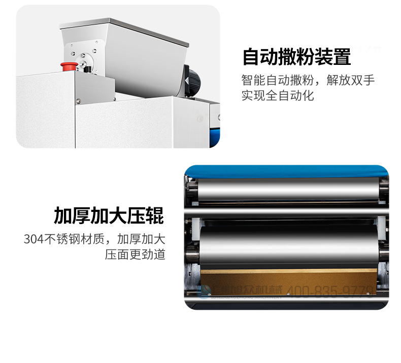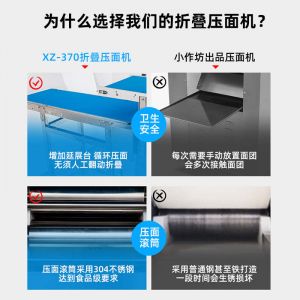 XZ-ZDYMJ370型自動折疊壓面機(jī),整機(jī)不銹鋼機(jī)身打造,真材實(shí)料,選用不銹鋼材質(zhì),打造經(jīng)久耐用、防腐蝕。匠心細(xì)節(jié),彰顯品質(zhì)貼心設(shè)計(jì)。一鍵設(shè)定壓面次數(shù),智能定時(shí),只需設(shè)定好壓面次數(shù),就能全自動壓面出面。