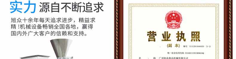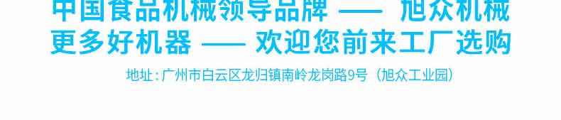 廣州旭眾食品機(jī)械有限公司是一家集科研開發(fā),生產(chǎn)設(shè)計(jì),營(yíng)銷服務(wù)為一體的現(xiàn)代化生產(chǎn)企業(yè)?,F(xiàn)代化生產(chǎn)車間,精湛制造技術(shù),所產(chǎn)機(jī)械歷經(jīng)市場(chǎng)重重考驗(yàn),不斷贏得海內(nèi)外客戶的贊譽(yù)。