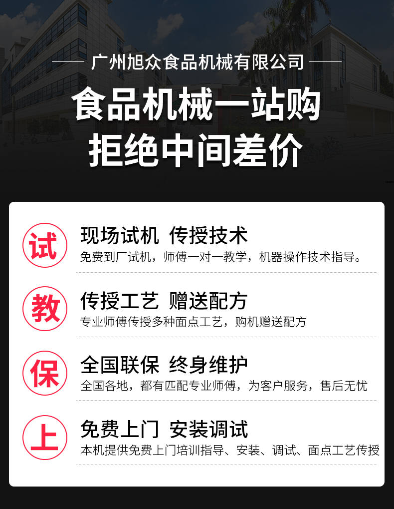廣州旭眾食品機(jī)械有限公司是一家集科研開(kāi)發(fā),生產(chǎn)設(shè)計(jì),營(yíng)銷(xiāo)服務(wù)為一體的現(xiàn)代化生產(chǎn)企業(yè)?,F(xiàn)代化生產(chǎn)車(chē)間,精湛制造技術(shù),所產(chǎn)機(jī)械歷經(jīng)市場(chǎng)重重考驗(yàn),不斷贏得海內(nèi)外客戶的贊譽(yù)。