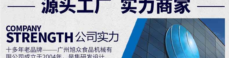 廣州旭眾食品機(jī)械有限公司是一家集科研開發(fā),生產(chǎn)設(shè)計(jì),營銷服務(wù)為一體的現(xiàn)代化生產(chǎn)企業(yè)?,F(xiàn)代化生產(chǎn)車間,精湛制造技術(shù),所產(chǎn)機(jī)械歷經(jīng)市場重重考驗(yàn),不斷贏得海內(nèi)外客戶的贊譽(yù)。